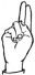 На ћирилици написано ПЕРИША БОНЏИЋ састоји се из 12 слова [?]. Исписано ћириличном једноручном азбуком за глувонеме:
